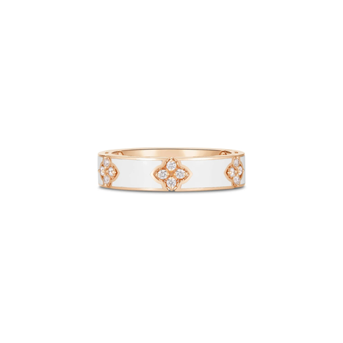 Crafted in luxurious 18K gold, this Love in Verona ring showcases a delicate blend of sparkling diamonds and pristine white enamel. Its elegant design captures timeless romance, making it a perfect symbol of love and commitment. Wear this exquisite piece to add a touch of sophistication and emotional meaning to any outfit.